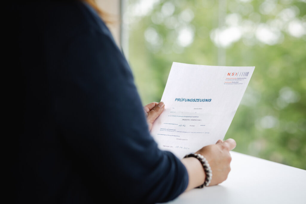 Leonie Strüber beantwortet Fragen zum Quereinstieg und den Angestelltenlehrgängen.